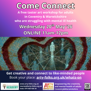 For more info visit: https://arty-folks.org.uk/what-we-offer/online-programme/come-connect